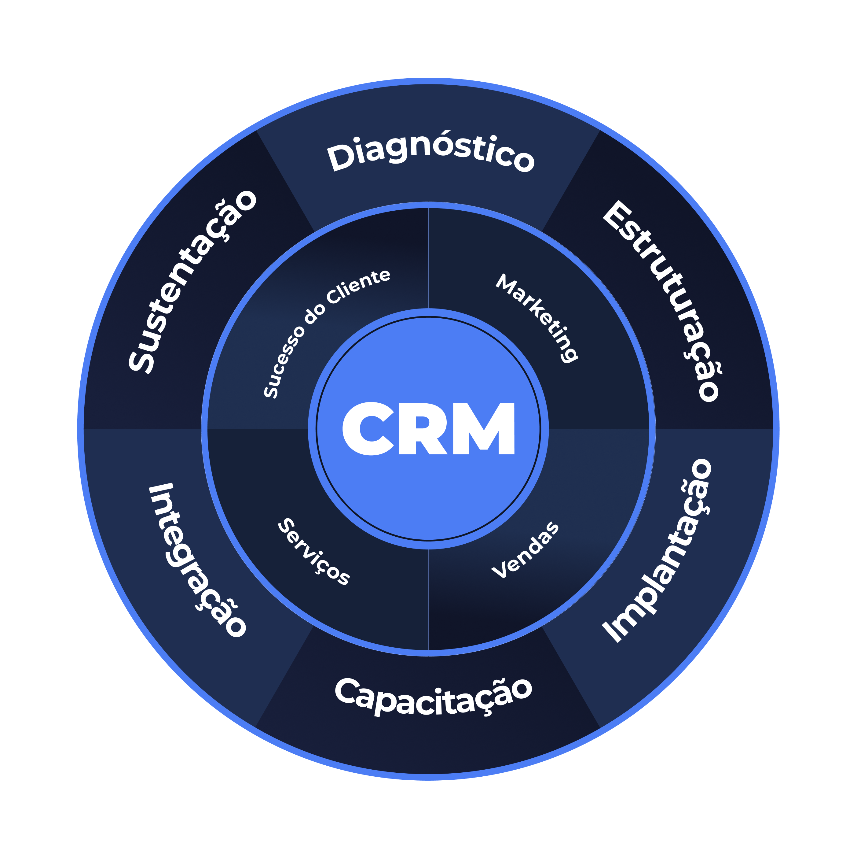 Nossa abordagem única integra estratégia, tecnologia e pessoas para criar um ecossistema comercial de alta performance centrado em seu CRM.